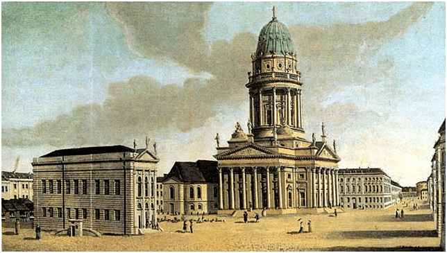 Желание основать необычный Дом французской комедии возникло у монарха Фридриха Великого в 1770 году. Чтобы освободить место в Берлине, он приказал перепланировать Жандарменмаркт и перенести конные конюшни кавалерийского полка “Gens d’armes”. Затем привлек к работе опытных специалистов того времени. Французский комедийный театр начал принимать зрителей в 1776 году, но большого успеха не имел. Тогда следующий король – Фридрих Вильгельм II решил в 1786 году предоставить привилегию занять эту сцену режиссеру Карлу Теофилу Деббелину, ранее выступавшему со своей труппой в театре на Беренштрассе. А члены труппы получили статус “королевских прусских, наиболее милостиво привилегированных национальных актеров”.